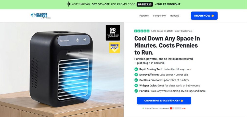 ➽➽ Order Your Glacier Breeze Portable AC – Limited Stock Available!